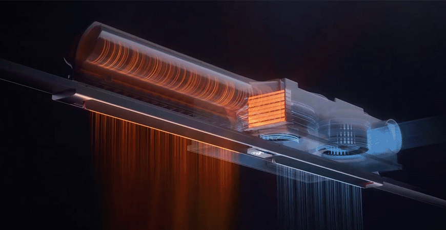 采用專利等壓射流風道,暖風經一體式風道均勻混合后吹出,人感風溫差小,從頭到腳都溫暖。